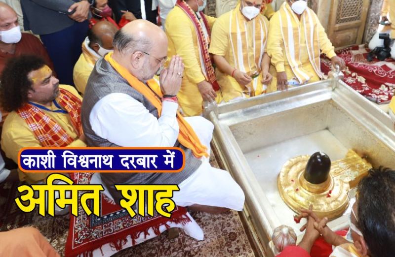 मिर्जापुर जनसभा करने के बाद अमित शाह और योगी आदित्यनाथ वाराणसी पहुंचे। सम्पूर्णानंद संस्कृत युनिवर्सिटी में उनका हेलिकाॅप्टर उतरा। उनके वाराणसी आगमन पर भाजपा नेताओं ने जमकर स्वागत किया। 5.40 बजे मुख्यमंत्री गृहमंत्री को लेकर पांचो पंडवा के रास्ते काशी विश्वनाथ मंदिर के उत्तरी गेट पहुंचे, जहां सीएम योगी ने पीतल का शंख, रुद्राक्ष की माला व अंगवस्त्रम देकर उनका स्वागत किया। इस मौके पर बीजेपी प्रदेश अध्यक्ष स्वतंत्रदेव सिंह, यूपी के धर्मार्थ कार्य मंत्री नीलकंठ तिवारी भी मौजूद रहे। गर्भगृह में मत्था टेकने और दर्शन-पूजन कर 5.56 बजे बाहर निकले।