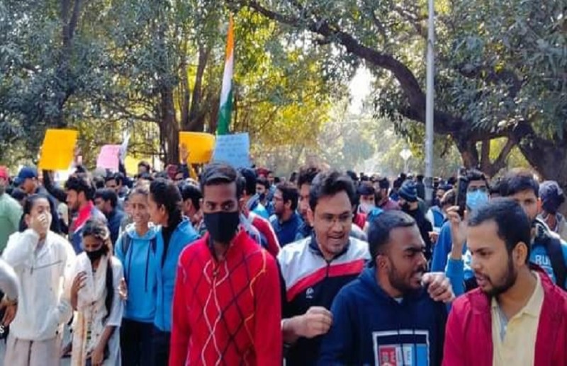 यूपी-बिहार में डबल इंजन की सरकार होने के बाद भी बेरोजगारी का आलम आजादी के बाद से सबसे अधिक है, जबकि यही भाजपा ने सालाना दो करोड़ सरकारी नौकरियां देने की बात कही थी। इलाहाबाद और पटना में प्रतियोगी छात्रों के साथ हुई बर्बरता भी रोजगार और भ्रष्टाचार से जुड़ी हुई घटना है। इसलिए अंग्रेज़ो से लड़कर मिले लोकतंत्र के गणतंत्र दिवस पर अपने हक़-हकूक की लड़ाई और इलाहाबाद-पटना में रहने वाले प्रतियोगी छात्रों के साथ हुई बर्बरता के खिलाफ बनारस हिंदू विश्वविद्यालय के आक्रोशित छात्रों ने पैदल मार्च निकाला और सभा की।