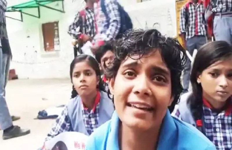 केंद्रीय विद्यालय के गेट पर बैठी रोती-बिलखती मयंक की बहन