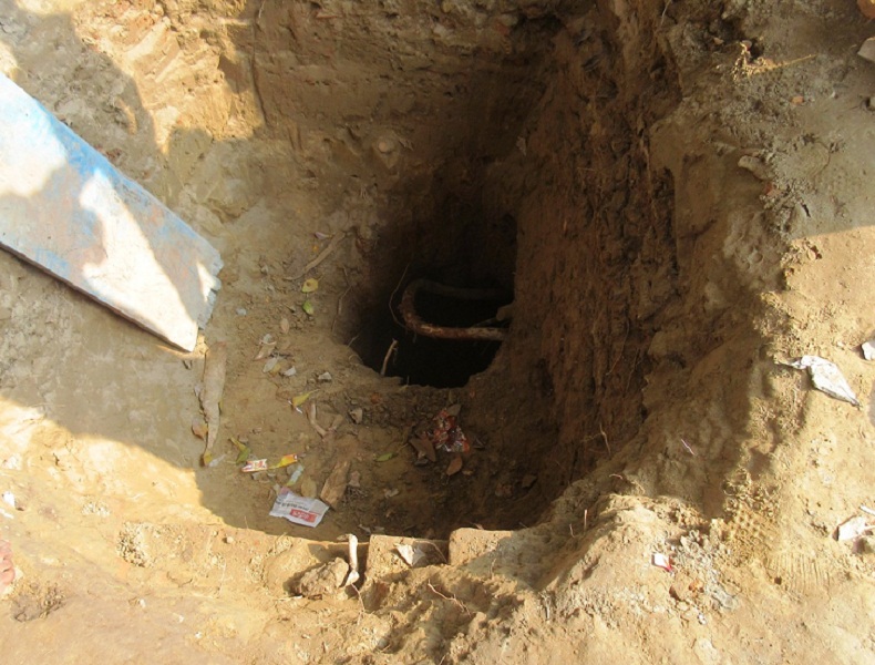 वाराणसी. गंगा तट स्थित कैथी के प्राचीन गांव में शौचालय के लिए खोदे जा रहे गड्ढे में सुरंग मिलने से क्षेत्र में हड़कंप मच गया। सुरंग की जानकारी होते ही ग्रामीणों की भीड़ वहां पर जमा हो गयी। सुरंग की गहराई लगभग 20 फीट है और सुरंग से अंदर जाने के लिए रास्ता भी घुमा हुआ है। काफी समय पहले पास स्थित गंगा नदी में रत्न, आभूषण, मुद्रा आदि मिल चुकी है जिससे बाद से इस बात की चर्चा है कि यहां पर खजाना भी दबा हो सकता है। फिलहाल ग्रामीणों ने फोन से जिले के वरिष्ठ अधिकारियों को सुरंग की जानकारी दे दी है, जिससे पुरातत्व विभाग के लोग सुरंग की सच्चाई का पता लगा ले।