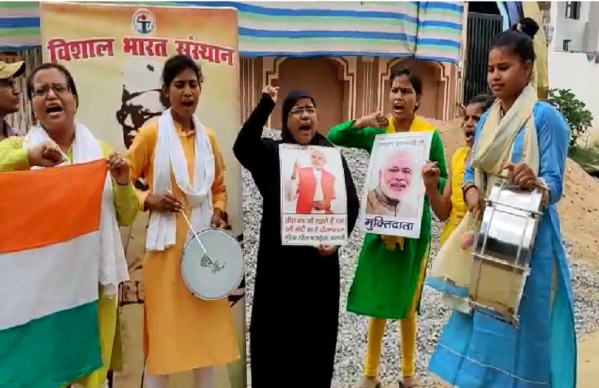 वाराणसी. जम्मू कश्मीर से अनुच्छेद 370 खत्म करने के बाद विशाल भारत संस्थान में खुशी की लहर दौड़ गयी। संस्थान के सदस्यों ने ढोल-मजीरा बजा कर केन्द्र सरकार के ऐतिहासिक निर्णय का स्वागत किया। नाजनीन अंसारी ने कहा कि हम पूरे कश्मीर में हम लोग तिरंगा फहरायेंगे। पीएम मोदी व अमित शाह के निर्णय से भारतवासियों की छाती चौड़ी हो गयी है।