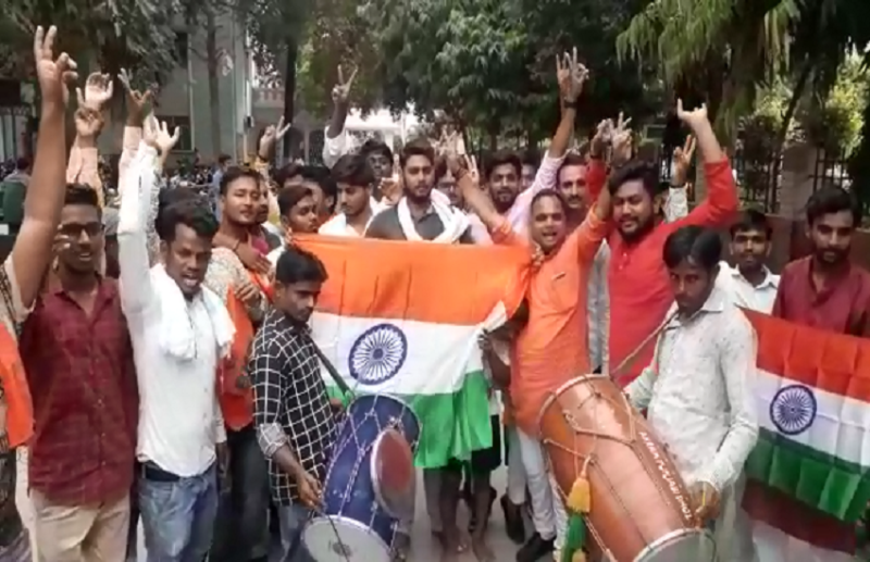 वाराणसी. केन्द्र सरकार के जम्मू कश्मीर से अनुच्छेद 370 हटाने के निर्णय के बाद से कई जगहों पर जश्र का माहौल है। पीएम नरेन्द्र मोदी के संसदीय क्षेत्र बनारस में लोगों में सबसे अधिक उत्साह देखने को मिल रहा है। महात्मा गांधी काशी विद्यापीठ के छात्रों ने नगाड़े बजा कर केन्द्र सरकार के निर्णय को ऐतिहासिक बताया है।