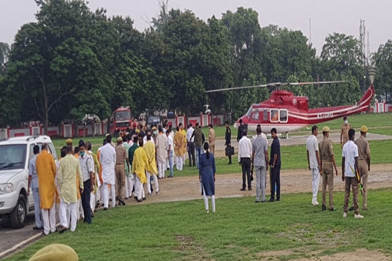 वाराणसी के पुलिस लाइन हेलीपैड पर पहुंचे मुख्यमंत्री योगी आदित्यनाथ