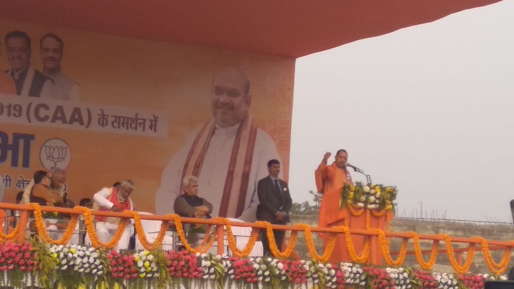 वाराणसी. सम्मपूर्णानंद संस्कृत विश्वविद्यालय के खेल मैदान में शनिवार को सीएए के समर्थन में आयाजित रैली में सीएम योगी आदित्यनाथ ने विरोधी दलों पर जमकर हमला बोला। कहा कि सपा, कांग्रेस व अन्य विरोधी दल देश विरोधी नारे लगाने वालों के साथ खड़े हैं। सीएए से किसी भी नागरिकता नहीं जायेगी। इस कानून को लेकर विरोधी दल भ्रम फैला रहे हैं।