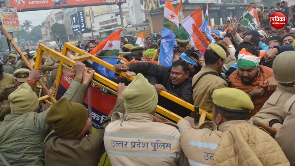 महानगर कांग्रेस कमेटी के अध्यक्ष राघवेंद्र चौबे के एलान के बाद सुबह से ही पुलिस और पीएसी की जवान रविंद्रपूरी स्थित कार्यालय पर मुस्तैद थे। इलाके की हर तरफ से बैरिकेटिंग की गई थी ताकि कोई भी कार्यालय तक न पहुंचने पाए। उधर तय समय पर कांग्रेस कार्यकर्ता गुरुधाम चौराहे पर इकट्ठा होना शुरू हो गए थे। सैकड़ों की संख्या में कार्यकर्ता गुरुधाम चौराहे से संसदीय क्षेत्र कार्यालय की तरफ कुछ किए तो पुलिस अलर्ट हो गई। खुद डीसीपी काशी जोन ने हाथ में डंडा और सिर पर हेलमेट लगाकर मोर्चा संभाल लिया और कार्यालय की तरफ बढ़ रहे कार्यकर्ताओं को बैरिकेडिंग के पहले ही रोक लिया। यहां कांग्रेस कार्यकर्ता धरना देने लगे और उन्होंने जमकर नारे लगाए। इस दौरान योगी मोदी मुर्दाबाद के नारे भी लगे।