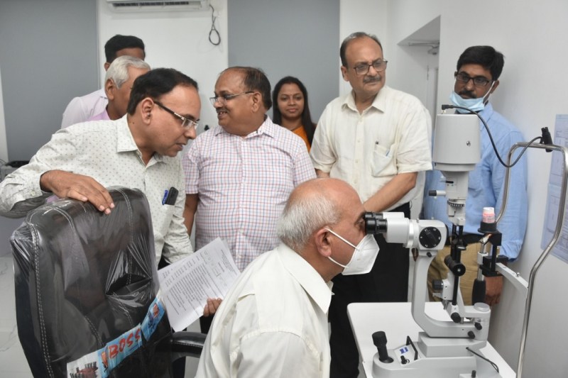 आईएमएस बीएचयू के क्षेत्रीय आई संस्थान में आंखों की जांच कराते रेकटर प्रो वीके शुक्ला