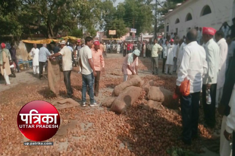 मंगलवार को बड़ी तादाद में किसान सैकड़ों बोरी आलू और गाड़ियों में बछड़े व सांड़ लेकर जिला मुख्यालय पहुंच गए। इसके बाद वहां जो हुआ वो देखकर लोग हैरान रह गए। किसानों ने एक-एक कर बोरे उतारे और आलू सड़क पर फेंकना शुरू कर दिया। देखते ही देखते सैकड़ों बोरी आलू किसानों ने सडक पर फेंक दिया। इसके बाद किसानों ने साथ लाए बछड़े और सांड़ों को भी मुख्यालय पर हकाल दिया। यह उनके विरोध का अनोखा तरीका था। एक तरफ वह आलू पर हो रहे नुकसान की ओर शासन व प्रशासन का ध्यान आकृष्ट कराना चाह रहे थे तो दूसरी ओर आारा और छुट्टा पशुओं की समस्या पर नाराजगी भी जताना उनका मकसद था। वो ये सब कर रहे थे और पुलिस मूक दर्शक बनी हुई थी।