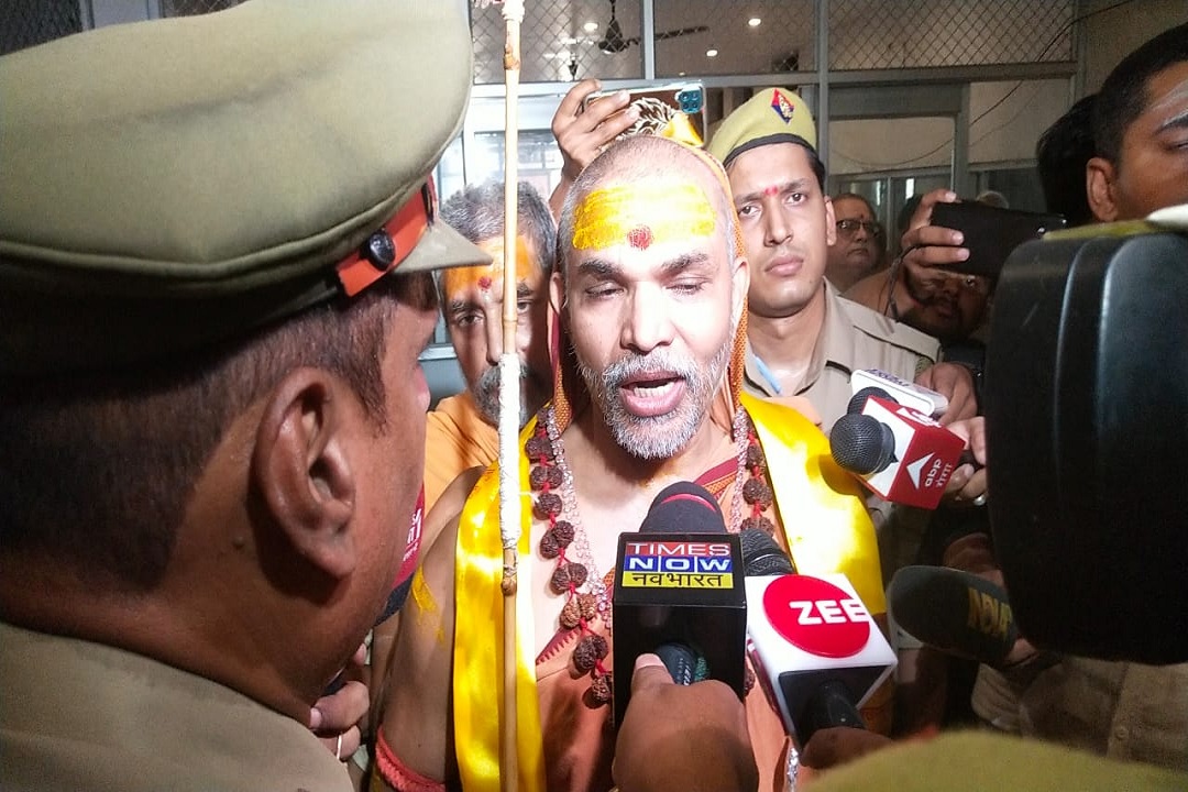 पुलिस की पहरेदारी में मीडिया से मुखातिब स्वामी अविमुक्तेश्वरानंद