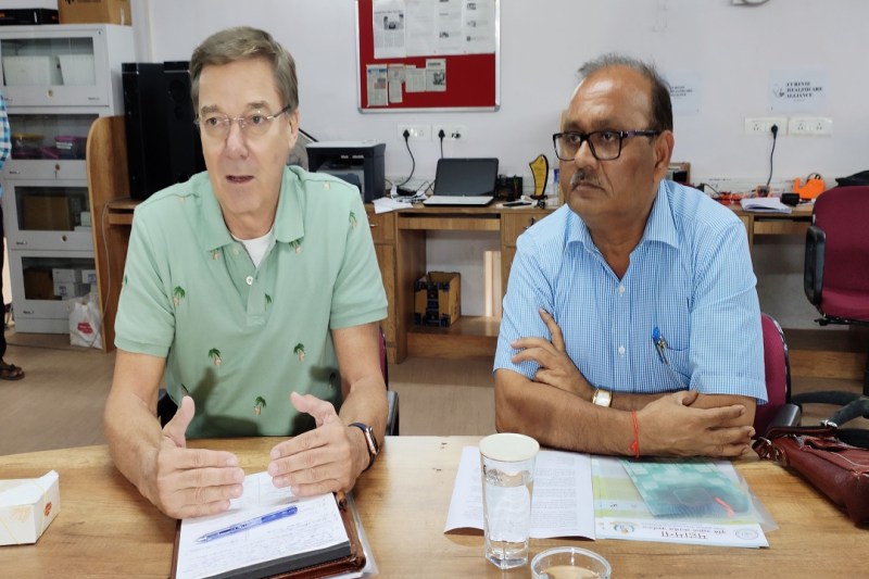 मीडिया को संबोधित करते नीदरलैंड ने वरिष्ठ विशेषज्ञ पीटर वान और आईआईटी बीएचयू के प्रो पीके मिश्रा