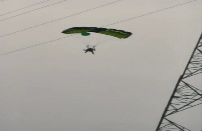 वाराणसी. रामनगर में एक विदेशी पर्यटक बिजली के 250 फिट ऊंचे टावर पर चढ़ कर पैराशूट के सहारे छलांग लगायी। सोशल मीडिया में वीडियो वायरल होते ही हड़कंमप मच गया। पहले पुलिस को घटना की जानकारी तक नहीं हुई थी। ग्रामीणों से सूचना मिलने पर पुलिस अब पर्यटक की खोज में जुट गयी है। पुलिस के आने से पहले ही विदेशी दंपती वहां से निकल गये।