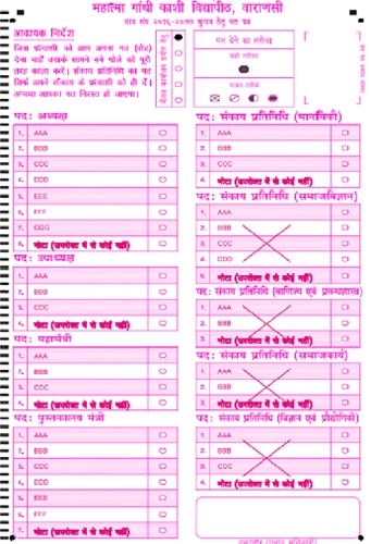 काशी विद्यापीठ प्रशासन ने नया बैलेट बॉक्स भी जारी किया है जिसमें मतदान वाली ओएमआर शीट को बिना मोड़े ही डालना है यदि ओएमआर शीट को मोड़ दिया तो कम्प्यूटर से जांचने में कठिनाई आयेगी। ऐसे में मतदान करने वाले छात्र व छात्राओं को बिना मोड़े ही ओएमआर शीट को बैलेट बॉक्स में डालना होगा।