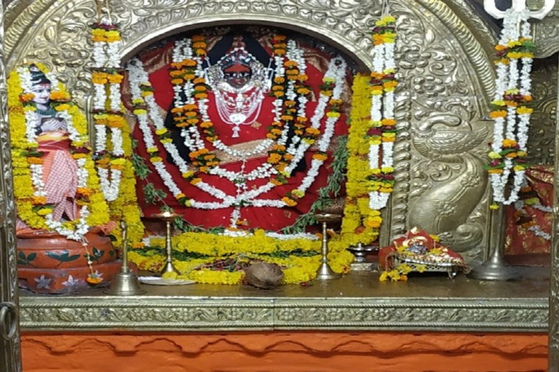 मातृ श्री के गर्भगृह के अंदर काशी के अष्ट भैरव में से एक श्री क्रोधन भैरव, श्री भद्रकाली, श्री हनुमान जी, श्री चौसठ योगिनी जी का विग्रह स्थापित है। मंदिर में श्री धृष्णमेश्वर ज्योर्तिलिंग, श्री धनंजय कूप, श्री प्रतगिरा देवी, श्री जीवित समाधइ, श्री अखंड धूा आदि देवता विराजमान हैं।