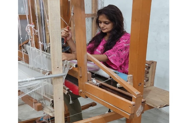 आईआईटी बीेएचयू द्वारा तैयार नवीन करघा पर काम करती महिला