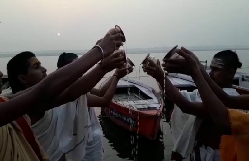 शंकराचार्य घाट पर ज्योतिष एवं शारदापीठाधीश्वर शंकराचार्य स्वामी स्वरूपानंद सरस्वती के प्रतिनिधि स्वामी अविमुक्तेश्वरानंद के नेतृत्व में ब्रह्ममुहूर्त में बटुकों ने सूर्य नारायण व मां गंगा का पूजन व आरती किया।