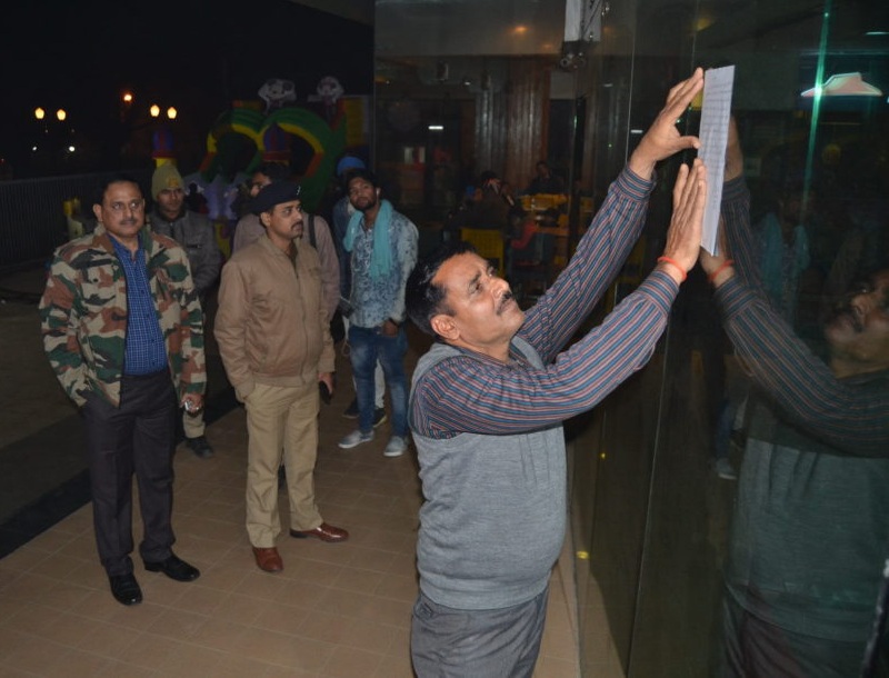 सपा के पूर्व सांसद के होटल पर नोटिस चस्पा करते अफसर