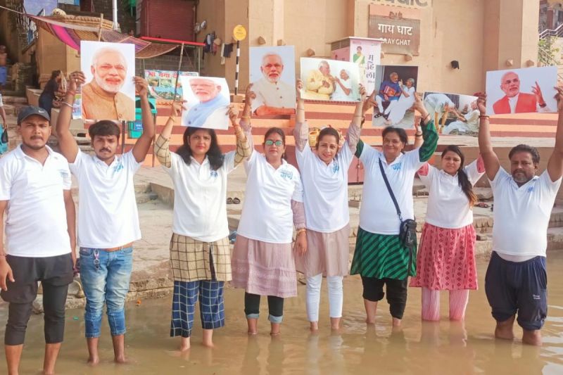 गंगा के घाटों पर हर हर महादेव संग ‘बधाई हो बधाई हो जन्मदिन की बधाई हो’ का उद्घोष कर मां गंगा को वंदन किया। घाटों पर बिखरे पड़े कूड़े- कचड़े समेटकर कूड़ेदान में समर्पित किया। मोदी का जन्मदिन स्वच्छता ही सेवा है के मंत्र के साथ मनाया गया।