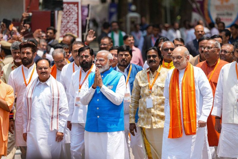PM Modi Nomination: प्रधानमंत्री नरेंद्र मोदी ने लोकसभा चुनाव के लिए वाराणसी से तीसरी बार मंगलवार को अपना नामांकन दाखिल किया। पीएम के नामांकन कार्यक्रम में मुख्यमंत्री योगी आदित्यनाथ, गृह मंत्री अमित शाह, रक्षा मंत्री राजनाथ सिंह, महाराष्ट्र के सीएम एकनाथ शिंदे, रामदास अठावले, चंद्रबाबू नायडू, भाजपा अध्यक्ष जेपी नड्डा, पवन कल्याण, संजय निषाद, हरदीप सिंह पुरी, जीतनराम मांझी और ओमप्रकाश राजभर समेत कई नेता शामिल रहे।