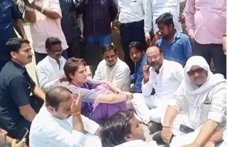 वाराणसी से सोनभद्र जाते हुए प्रियंका गांधी जैसे ही नारायणपुर पहुंची स्थानीय पुलिस ने उनके काफिले को रोक दिया। जिला प्रशासन की इस कार्रवाई पर प्रियंका ने कहा कि मेरे वहां पर जाने से कोई कानून व्यवस्था पर असर नहीं पड़ने वाला। उन्होंने कहा कि मुझे किसी कानून के तहत रोका गया। प्रियंका गांधी पार्टी नेताओं संग वहीं धरने पर बैठ गईं। धरने पर बैठी प्रियंका ने कहा कि मुझे जिला प्रशासन के अधिकारी ऑर्डर की कॉपी दिखाए कि मुझे किस नियम के तहत रोका गया है। वहीं प्रशासन ने प्रियंका गांधी समेत कांग्रेसी कार्यकर्ताओं को हिरासत में ले लिया है। बताया जा रहा है कि सोनभद्र के मूर्तिया गांव में धारा 144 लगी हुई है।