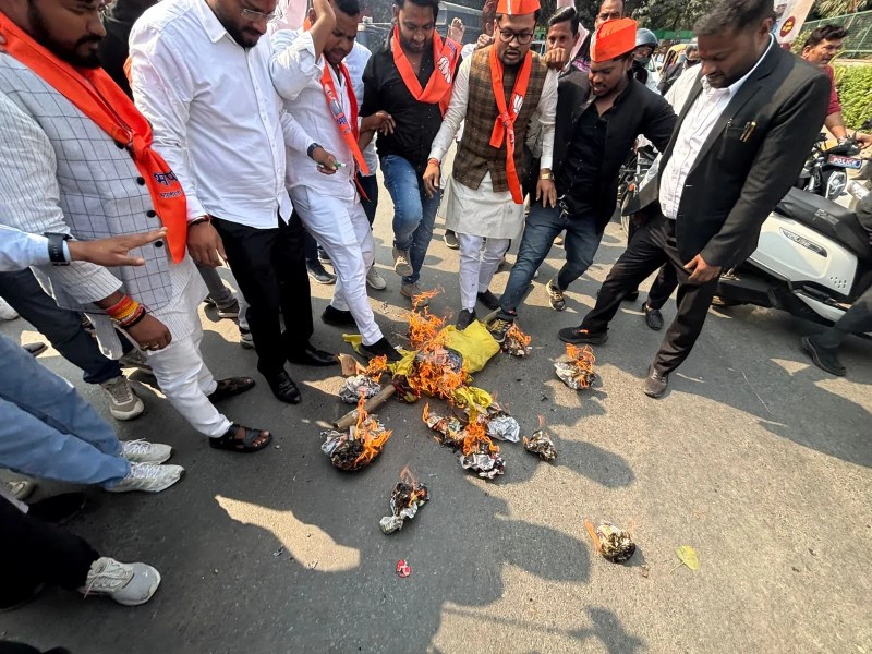 वाराणसी: दिल्ली के भारत मंडपम में आयोजित हो रहे एआई सबमिट को लेकर राजनीति गर्म हो गई है। कांग्रेस कार्यकर्ताओं द्वारा एआई सबमिट में जाकर हंगामा मचाने के बाद अब बीजेपी सड़कों पर है। प्रधानमंत्री नरेंद्र मोदी के संसदीय क्षेत्र वाराणसी में भारतीय जनता युवा मोर्चा के कार्यकर्ताओं ने कांग्रेस नेता राहुल गांधी का पुतला दहन किया। इससे पहले कार्यकर्ता पुतला लेकर पहुंचे थे, जिसे पुलिस ने छीन लिया, लेकिन कुछ देर बाद वकीलों के हस्तक्षेप के बाद दोबारा पुतला दहन किया गया।