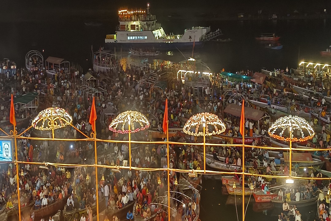 पहले खड़े हो कर मां गंगा को नमन किया, फिर आधे घंटे तक देखी नयनाभिराम आरती