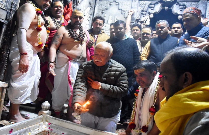 काशी विश्वनाथ मंदिर में दर्शन के बाद संघ प्रमुख मोहन भागवत मंदिर के नीलकंठ प्रवेश द्वार से होते हुए पशुपतिनाथ मंदिर व मणिकर्णिका घाट गये। मंदिर में दर्शन करने के साथ घाट से मां गंगा को प्रणाम किया। मंडलायुक्त दीपक अग्रवाल ने संघ प्रमुख को अंगवस्त्रम व रुद्राक्ष, डीएम कौशल राज शर्मा ने काशी की धरोहरों पर बनी एलबम की प्रति भेंट की।