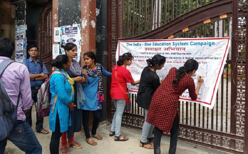 एक देश एक कर तो एक देश एक शिक्षा प्रणाली क्यों नहीं। यह सवाल पूछा है प्रधानमंत्री नरेंद्र मोदी के संसदीय क्षेत्र के युवाओं ने। उन्होंने इसके लिए हस्ताक्षर अभियान चलाया शुक्रवार को।