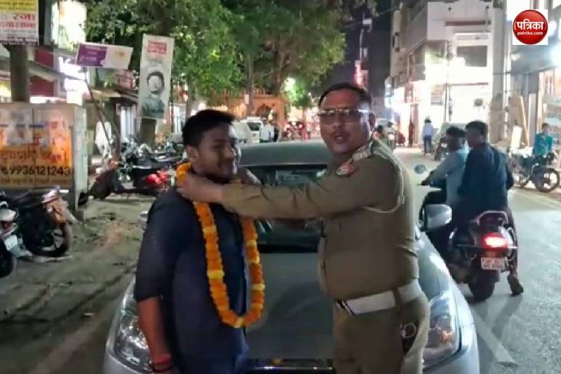 Varanasi News : वाराणसी पुलिस की गांधीगिरी, कार चालक को माला पहनाकर किया चालान, जानिए वजह