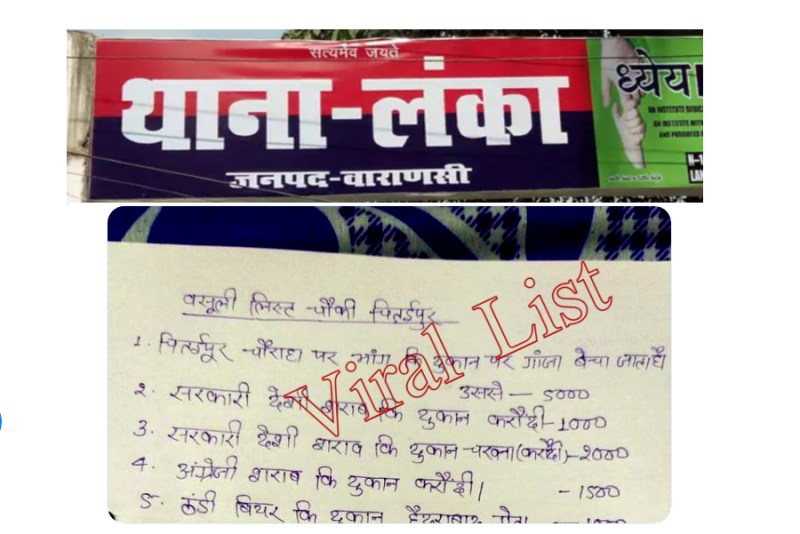 वाराणसी. उत्तर प्रदेश के चंदौली जिले की मुगलसराय कोतवाली की वसूली लिस्ट वायरल होने के बाद अब वाराणसी से भी पुलिस वसूली की कथित लिस्ट वायरल हुई है। इस लिस्ट को आईपीएस अमिताभी ठाकुर ने यूपी पुलिस, आईजी वाराणसी और एडीजी जोन वाराणसी को टैग करते हुए ट्वीट कर कार्रवाई की मांग की है। मुगलसराय कोतवाली की लिस्ट भी अमिताभ ठाकुर ने ही ट्वीट की थी।