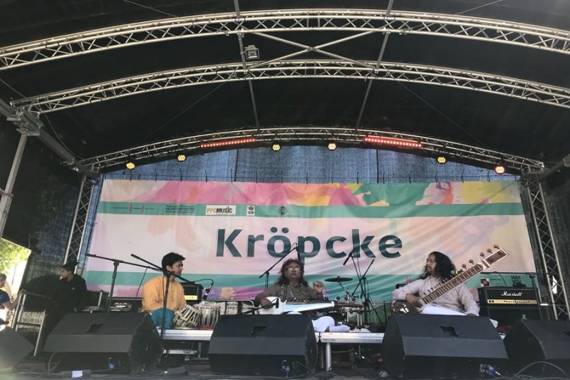 विश्व संगीत समारोह के मौके पर हेनोवर में सरोद वादक विकास महाराज की प्रस्तुति