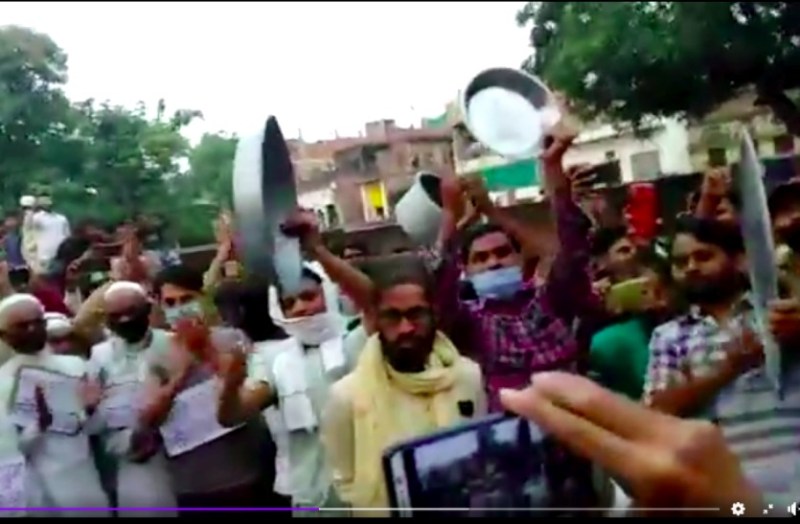 वाराणसी. पहले की तरह बिजली के फ्लैट रेट की बहाली को लेकर बुनकरों की हड़ताल लगातार 14वें दिन भी जारी है। अपनी मांगों को मनवाने के लिये बुनकर नुक्कड़, सभाओं मानव श्रृंखला और प्रदर्शन आदि रोजाना कुछ न कुछ कर रहे हैं। इस क्रम में मुर्री बंद के 13वें दिन शाम को बुनकरों ने ताली और थाली बजाई। मंगलवार की शाम को पांच बजे बुनकर बाहुल्य इलाकों में ताली-थाली और घंटा की आवाज गूंजती रही। बुनकर बिरादराना तंजीमों और बुनकर नेताओं की अपील पर अपने घरों के बाहर और छतों पर खड़े होकर बुनकर ताली-थाली और घंटा बातजे दिखे।