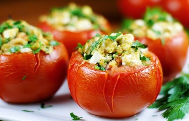 भरवां टमाटर तैयार हैं। इन्हें सावधानी से एक-एक करके कढ़ाही से निकालकर प्लेट में रख लीजिए। इनके ऊपर थोड़ा सा हरा धनिया डालिए और पनीर कद्दूकस करके गार्निश कर दीजिए। स्टफ्ड टमाटर को चपाती, परांठे, नान के साथ परोस सकते हैं।