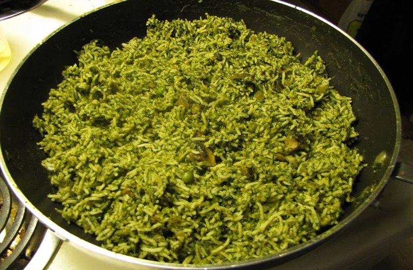 मसाले को चैक कीजिए, टमाटर नरम होने पर दही डालकर मिला दीजिए, मसाले में उबाल आने पर इसमें पनीर के टुकड़े डाल दीजिए और नमक डाल कर मिला दीजिए। अब इसमें पालक डालकर मिक्स करें और 2-3 मिनिट के लिए पका लीजिए। एक बडा़ बर्तन लीजिए इसमें चावलों को दम दिलवाएं। बर्तन के तले में 1-2 छोटी चम्मच घी डाल दीजिए और थोडी़ सी सब्जी डालकर फैला दीजिए। अब इसके ऊपर आधा चावल डालकर चावल की एक परत बिछा दीजिए, अब फिर से सब्जी को चावल के ऊपर डाल दीजिए और एक जैसा फैला कर चावलों को ढक दीजिए।