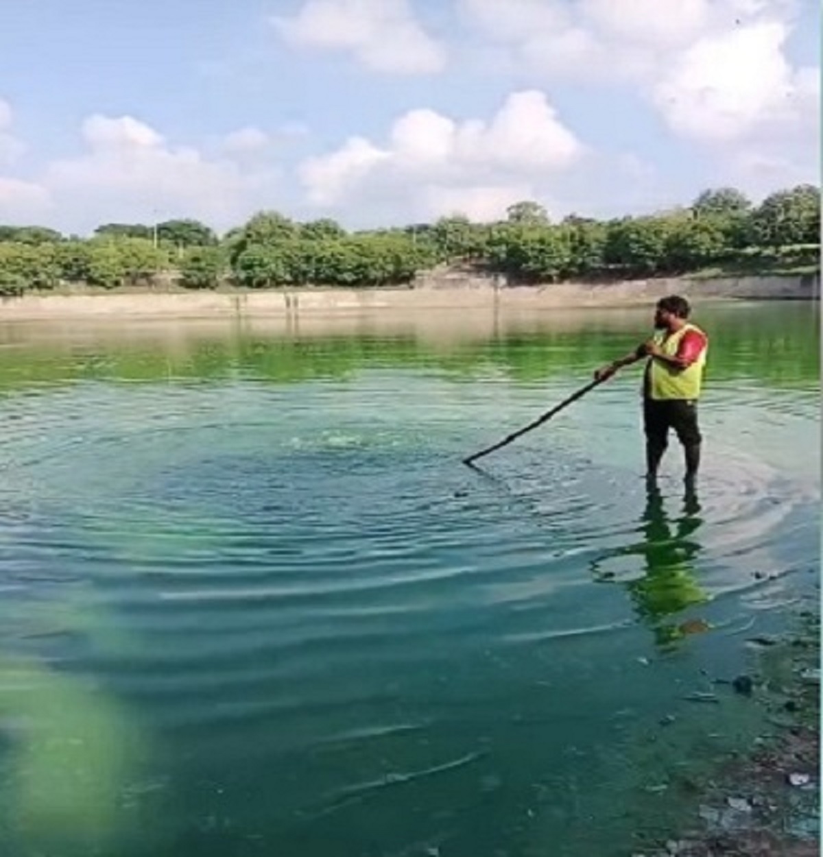 अहमदाबाद शहर के असारवा स्थित तालाब के पानी में मनपा ने ऑक्सीजन का स्तर बढ़ाने का प्रयास शुरू किया है। सोमवार को मनपा की टीम सात-सात किलो के दो सिलेंडर लेकर तालाब पर पहुंची। जहां दोनों सिलेंडर की ऑक्सीजन पानी में छोड़ी गई। तालाब में मछली व अन्य जीवों को बचाने के प्रयास में यह कदम उठाया जा रहा है। बताया गया है कि पानी में ऑक्सीजन की कमी दर्ज की गई थी जिससे यह कदम उठाया गया है।