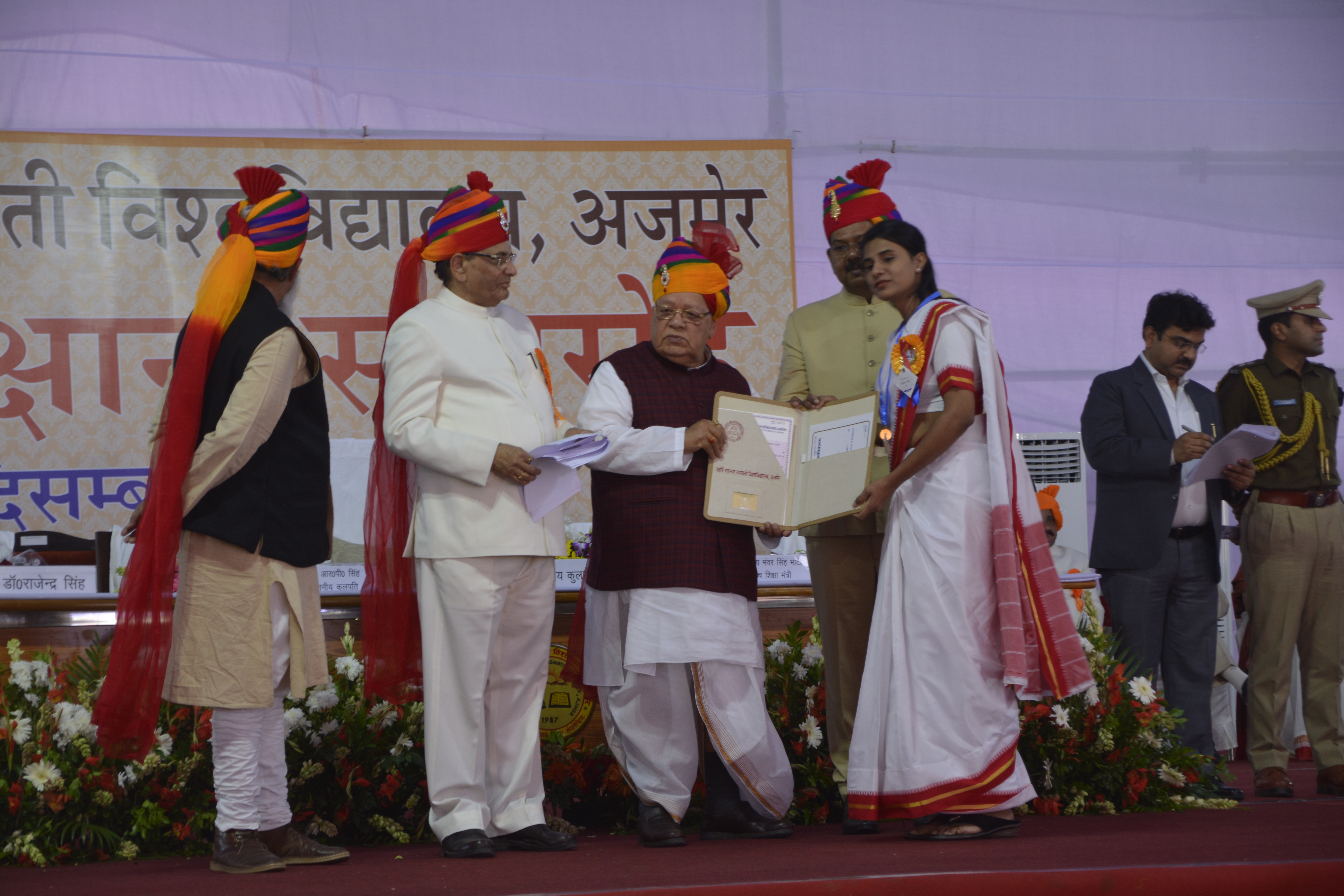 उन्होंने कहा कि जीवन में लक्ष्य और संबंधित विषय की स्पष्ट जानकारी के बगैर कामयाबी हासिल नहीं हो सकती है। शिक्षा के कारण ही व्यक्ति में विवेक, समझबूझ और देश-समाज के विकास की अवधारणा विकसित होती है। युवाओं-विद्यार्थियों को शोध प्रवृत्ति, नवाचार और अध्ययनशीलता के गुण सतत बने रहने चाहिए। आज भारत की उपेक्षा कोई मुल्क नहीं कर सकता है। हमारे डॉक्टर, इंजीनियर, वैज्ञानिक, शिक्षक और उद्यमियों ने दुनिया में वर्चस्व स्थापित किया है। उन्होंने अपने अनुभव, ज्ञान और शोध से पहचान बनाई है। नौजवानों को देश के सामाजिक, आर्थिक, भौगोलिक विकास में इसे कायम रखना चाहिए। इससे पूर्व कुलपति प्रो. आर. पी. सिंह ने प्रतिवेदन पेश किया। कुलसचिव संजय माथुर ने स्वागत किया।