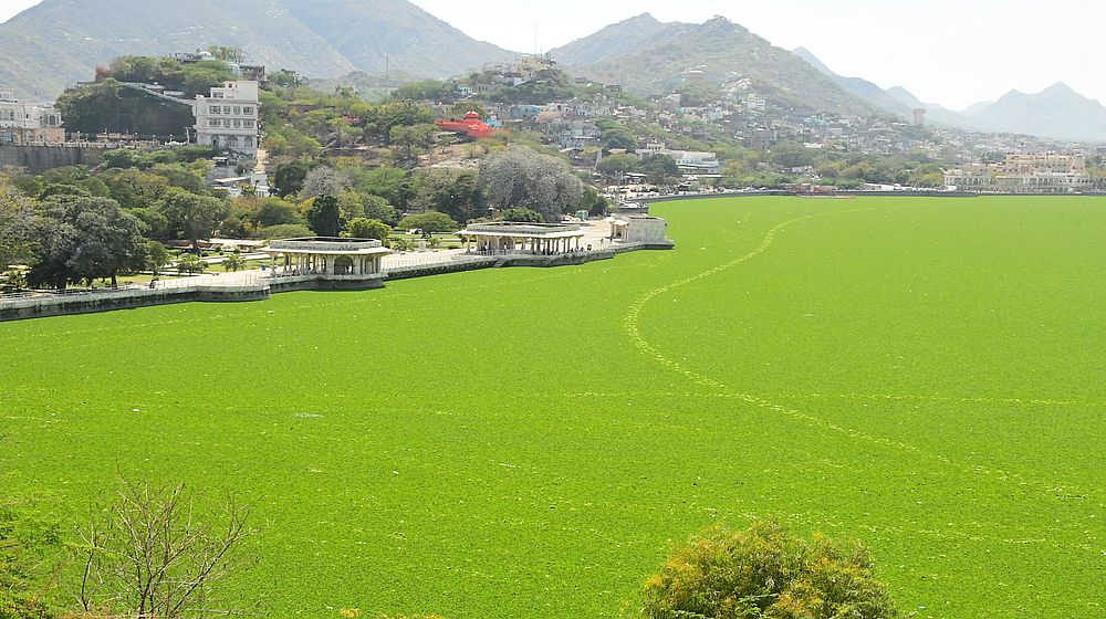 अजमेर के ऐतिहासिक आनासागर झील इन दिनों जलकुंभी के जाल का शिकार बन चुकी है। नगर निगम प्रशासन ने जलकुंभी को निकालने के लिए मशीन डंपर लगा रखे हैं। अभी तक इसका समाधान नहीं हुआ जलकुंभी कुछ इस तरह से फैली जैसे कोई बड़ा क्रिकेट ग्राउंड हो