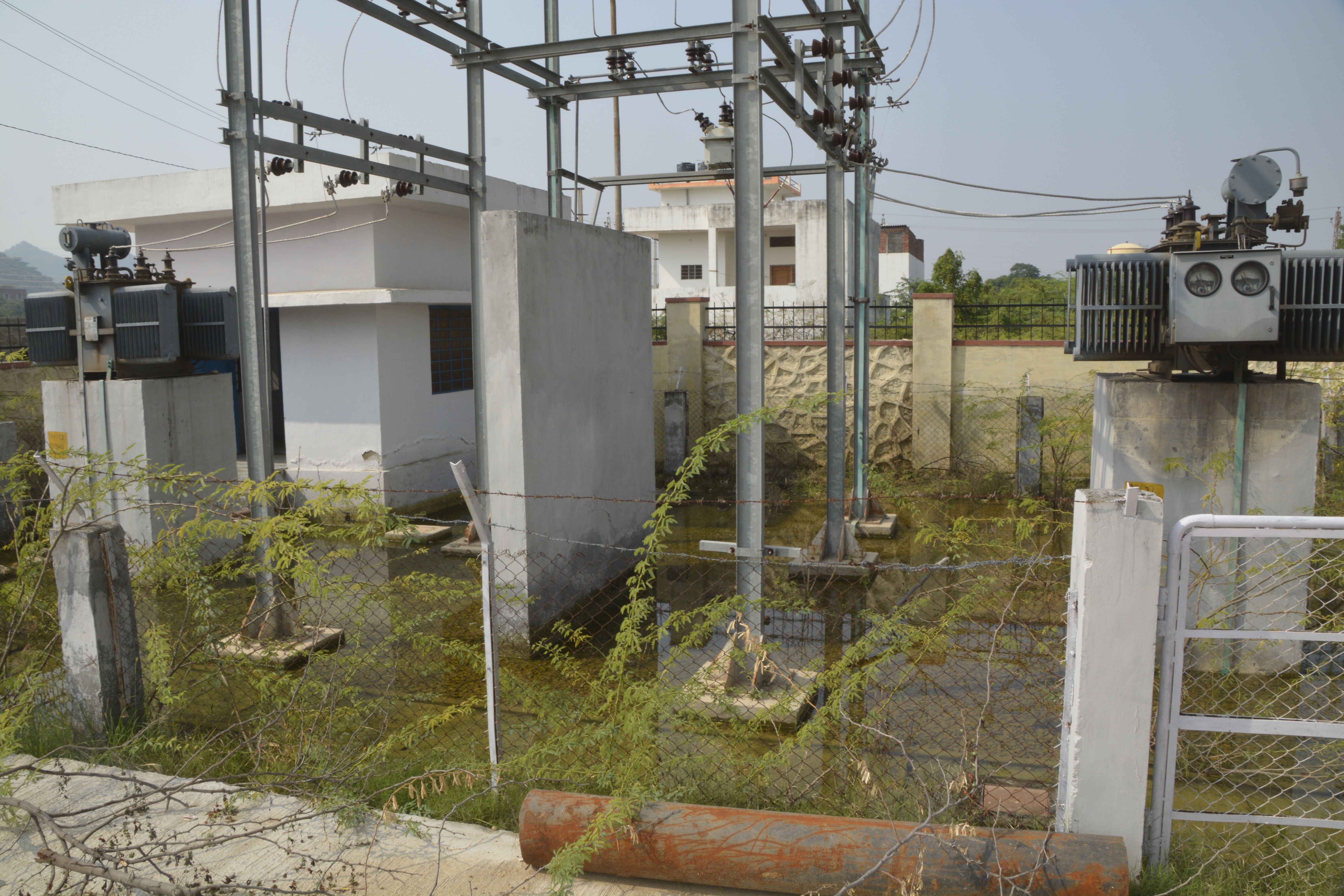 पानी में घिरा ट्रांसफार्मर