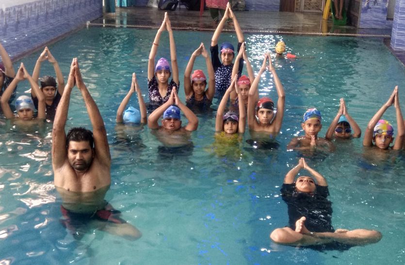 World Yoga Day- अजमेर में स्विमिंग पूल में योगाभ्यास