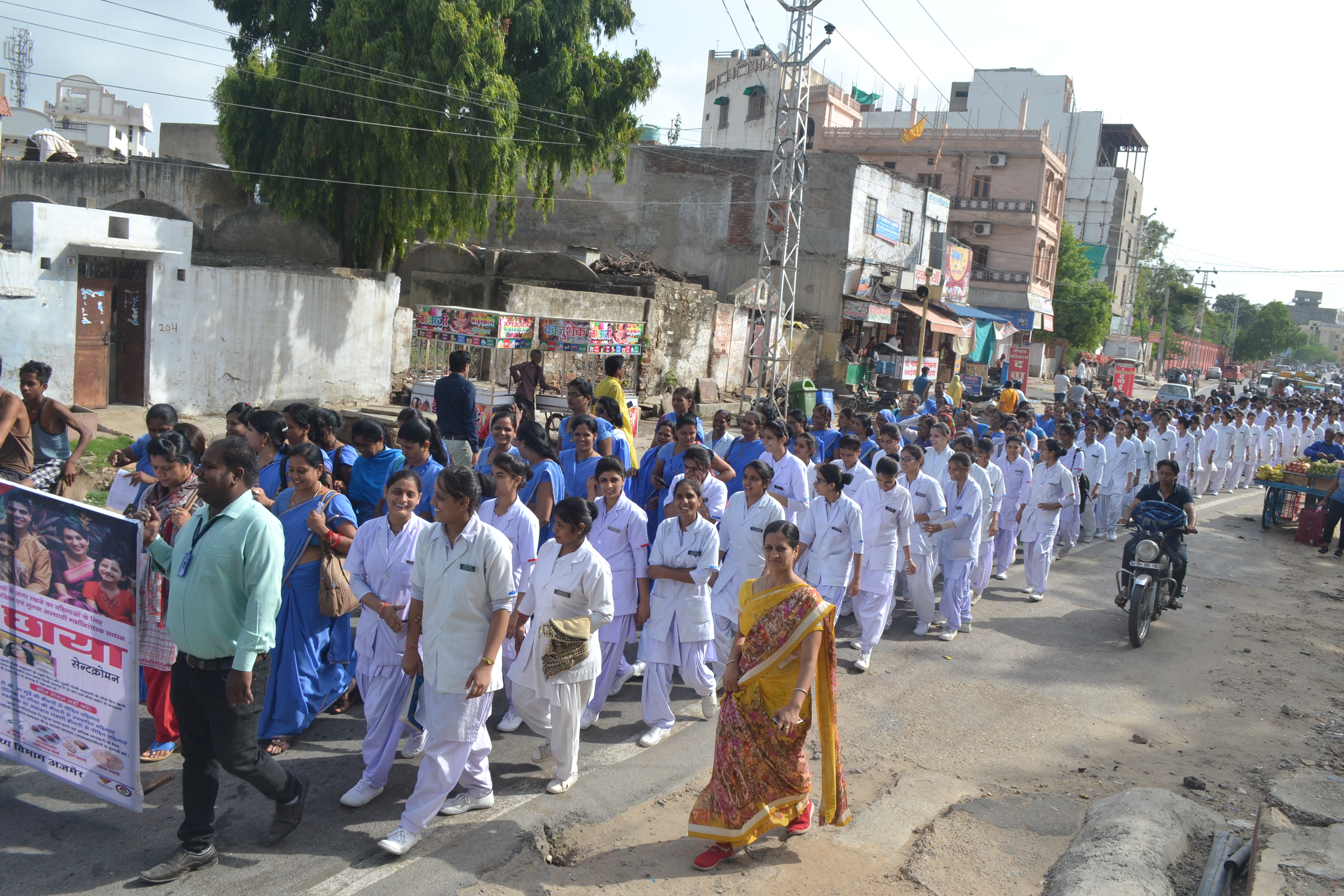 स्वास्थ्य संकुल भवन से सरकारी व निजी नर्सिंग कॉलेज के छात्र-छात्राओं, आशा सहयोगिनियों व अन्य स्वास्थ्य कार्यकर्ता रैली में रवाना हुए। रैली स्वास्थ्य संकुल भवन से होती हुई सावित्री चौराहा, बजरंगगढ़ पहुंची। बजरंगगढ़ चौराहे पर मानव शृंखला बनाकर परिवार कल्याण संबंधी जानकारी दी गई। इसके बाद रैली अग्रसेन चौराह स्थित ट्रेनिंग सेन्टर पहुंची। जहां डॉ. जोधा ने छात्र-छात्राओं, आशा सहयोगिनियों व अन्य स्वास्थ्य कार्यकर्ताओं को परिवार कल्याण संबंधित योजनाओं व इनके प्रचार-प्रसार के संबंध में आवश्यक दिशा निर्देश दिए एवं छोटा परिवार के लाभ संबंधित जानकारी दी।