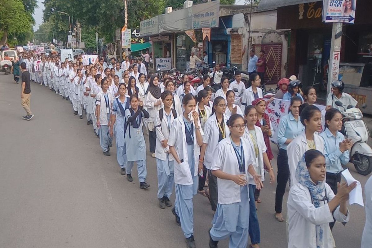 कोलकाता में महिला रेजिडेंट डॉक्टर के साथ हुए बलात्कार के विरोध में लायंस क्लब अलवर मत्स्य, इंडियन मेडिकल एसोसिएशन ईएससीआई मेडिकल कॉलेज स्काउट एंड गाइड फेलोशिप के संयुक्त आह्वान पर शुक्रवार को एक रैली का आयोजन किया गया। यह रैली शाम 5 बजे शहीद स्मारक से शुरू हुई और चर्च रोड, होप सर्कस, घंटाघर, मेहताब सिंह का तिराहा, भगत सिंह चौराहा, बिजली घर चौराहा, नंगली सर्किल होते हुए शहीद स्मारक पर समाप्त हुई। रैली में शामिल सदस्यों ने अपने विचार व्यक्त किए और सरकार से माँग की है कि जल्द से जल्द अपराधियों को कड़ी सजा दी जाए। इस दौरान दिवंगत आत्मा को श्रद्धांजलि देकर रैली समाप्त की गई।