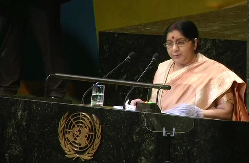 संयुक्त राष्ट्रः संयुक्त राष्ट्र में विदेश मंत्री सुषमा स्वराज ने पाकिस्तान की हरकतों को दुनिया के सामने उजागर किया। उन्होंने कहा कि पड़ोसी देश भारत में आतंकी गतिविधियों को बढ़ाने में लगा है। उन्होंने कहा कि पाकिस्तान में आतंकी चुनाव लड़ते हैं और उनके नाम पर डाक टिकट जारी किया जाता है। इसके अलावा विदेश मंत्री पर्यावरण के मुद्दे पर भी भारत के रुख को दुनिया के सामने रखा।