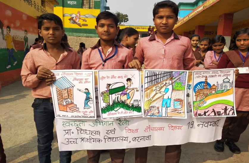 विश्व शौचालय दिवस पर बच्चों ने निकाली रैली