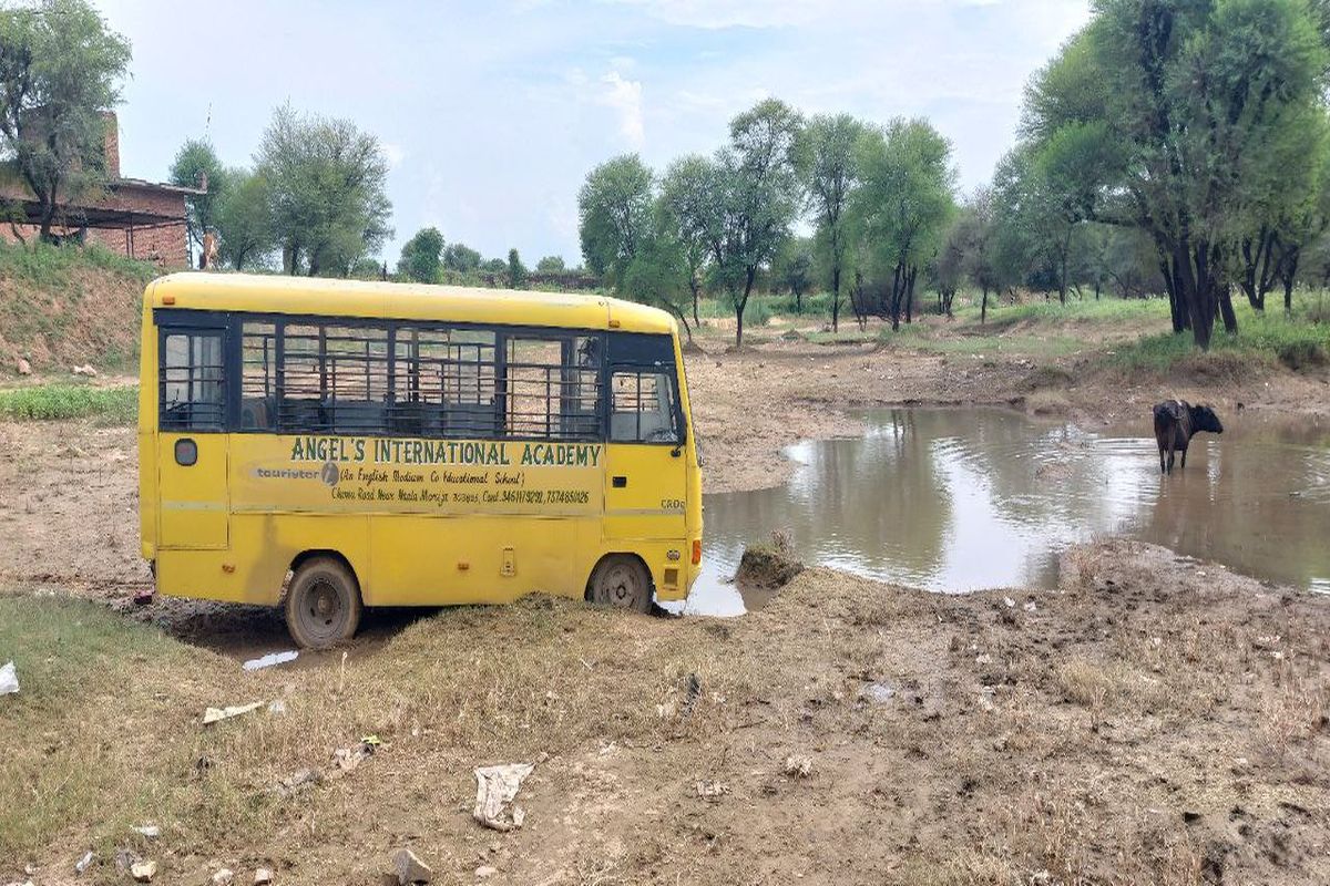 चौमू @ पत्रिका. चौमू- चंदवाजी राष्ट्रीय राजमार्ग के समीप स्टेट हाईवे के पास शुक्रवार शाम को समरपुरा पुलिया पर बाड़ी नदी में स्कूली बच्चों से भरी एक प्राइवेट स्कूल की बस उतर गई, इससे बस में सवार विद्यार्थियों में अफरा – तफरी मच गई। बस में सवार बच्चों में मची चीख पुकार मच गई। बस नीचे उतरने से दो बालकों को चोट आई, जिनको चौमूं के निजी अस्पताल में भर्ती करा कर उपचार कराया गया। बस नदी में उतरने की सूचना पर अभिभावकों में भी अफरा- तफरी मच गई। परिजनों को ज्यों ही सूचना मिली दौड़ – दौड़ आए और अपने बालकों को सम्भाला। वहीं सूचना पर पुलिस भी मौके पर पहुंच गई। जानकारी के अनुसार छुट्टी होने के बाद बस बच्चों को घर छोड़ने जा रही थी। अनियंत्रित होकर बस बाड़ी नदी में उतर गई। हादसे के बाद बस चालक मौके से फरार हो गया। इधर ग्रामीणों ने चौमू में अस्पताल में विरोध प्रदर्शन भी किया।