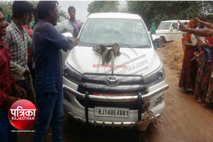 जिले के माण्डल क्षेत्र के धूलखेड़ा गांव के निकट शनिवार दोपहर राज्य सरकार के मुख्य सचेतक कालूलाल गुर्जर के वाहन पर मांगों की अनदेखी करने का आरोप लगा रहे कुछ ग्रामीणों ने जूतों की माला पहना दी। इस दौरान गुर्जर पास में ही जिंदल सॉ कंपनी के खनन क्षेत्र में एक कार्यक्रम में मौजूद थे। हालांकि जिस समय वाहन को जूते की माला पहनाई गई उसमें कोई मौजूद नहीं था।