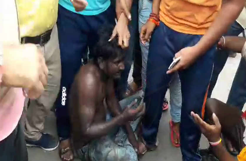 शहर के कृषि उपज मण्डी के सामने चौराहे पर युवक का मांदलिया छीनकर भाग रहे एक व्यक्ति को गुरुवार दोपहर लोगों ने दबोच लिया। सरेराह चौराहे पर उसे जमकर पीटा।इस दौरान उसका साथी भागने में कामयाब रहा। पुलिस के देरी से पहुंचने और बड़ी संख्या में तमाशबीनों से वहां जाम लग गया। वाहनों की लम्बी कतार लग गई। सुभाषनगर थाना पुलिस ने युवक को गिरफ्तार कर लिया।