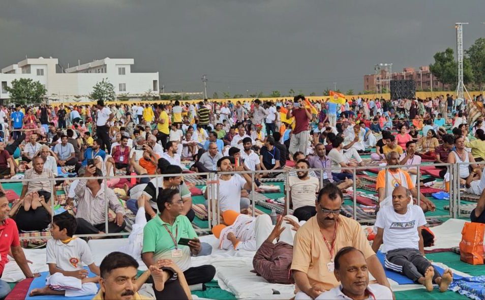 स्वामी रामदेव रविवार अलसुबह तेरापंथ नगर में भारत स्वाभिमान ट्रस्ट, पतंजलि योग समिति, युवा भारत, महिला पतंजलि योग समिति, पतंजलि किसान सेवा समिति के संयोजन एवं भारत विकास परिषद, हार्टफुलनेस, जीतो, जनहित योग एवं स्वास्थ्य प्रचार समिति के आयोजन में त्रिदिवसीय योग चिकित्सा एवं ध्यान शिविर के दूसरे दिन हजारों लोगों को योग का अभ्यास कराते हुए संबोधित कर रहे थे। उन्होंने कहा कि कलयुग में कर्म की प्रधानता है। हम कर्म को प्रधान मानकर ही कलयुग को सार्थक कर सकते हैं। धर्म का विग्रह जो दिख रहा है वह पूरा जीवन ज्ञानवान, बलवान योगीवान बनेंगे तो बदल जाएगा। साधु संतों की तपस्या व मर्यादा से ही उनका जीवन दूसरों के लिए प्रेरणादायी व सार्थक होता है। योग में सबसे ज्यादा उन्होंने प्राणायाम का महत्व बताया। उन्होंने कहा कि योगासन एवं प्राणायाम से हमें कई रोगों से मुक्ति मिलती है। योग एवं आयुर्वेद से हम हाई ब्लड प्रेशर, शुगर, मोटापा, किडनी, लीवर, फेफड़े आदि के रोगों से मुक्ति पा सकते हैं। शिविर में मेवाड़ यूनिवर्सिटी के विद्यार्थियों ने भी बड़ी संख्या में पहुंचकर योग का अभ्यास किया। योग में जिले भर से दर्जनों बसों के माध्यम से लोग पहुंचे।