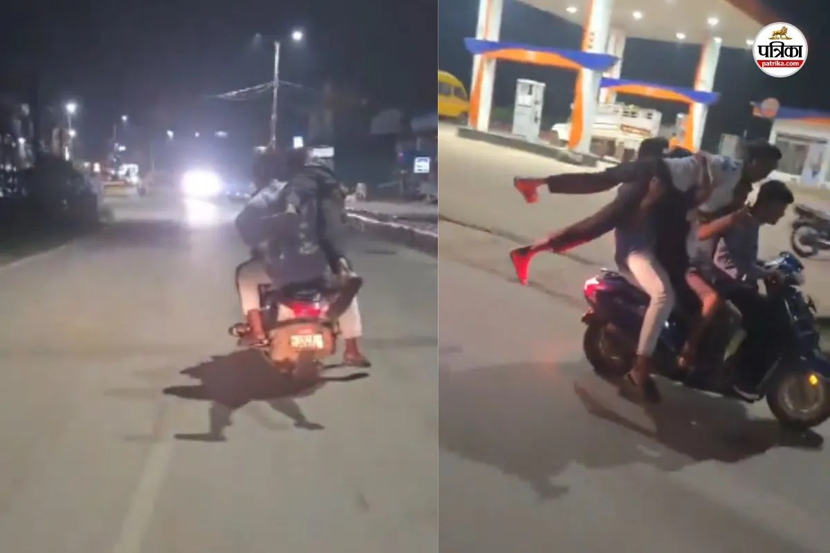 Viral Video: बीजापुर नेशनल हाइवे पर यातायात नियमों को ताक पर रखकर लापरवाही से वाहन चलाने का मामला सामने आया है। एक स्कूटी में पांच लोग सवार होकर तेज रफ्तार से सड़क पर दौड़ाते देखे गए।