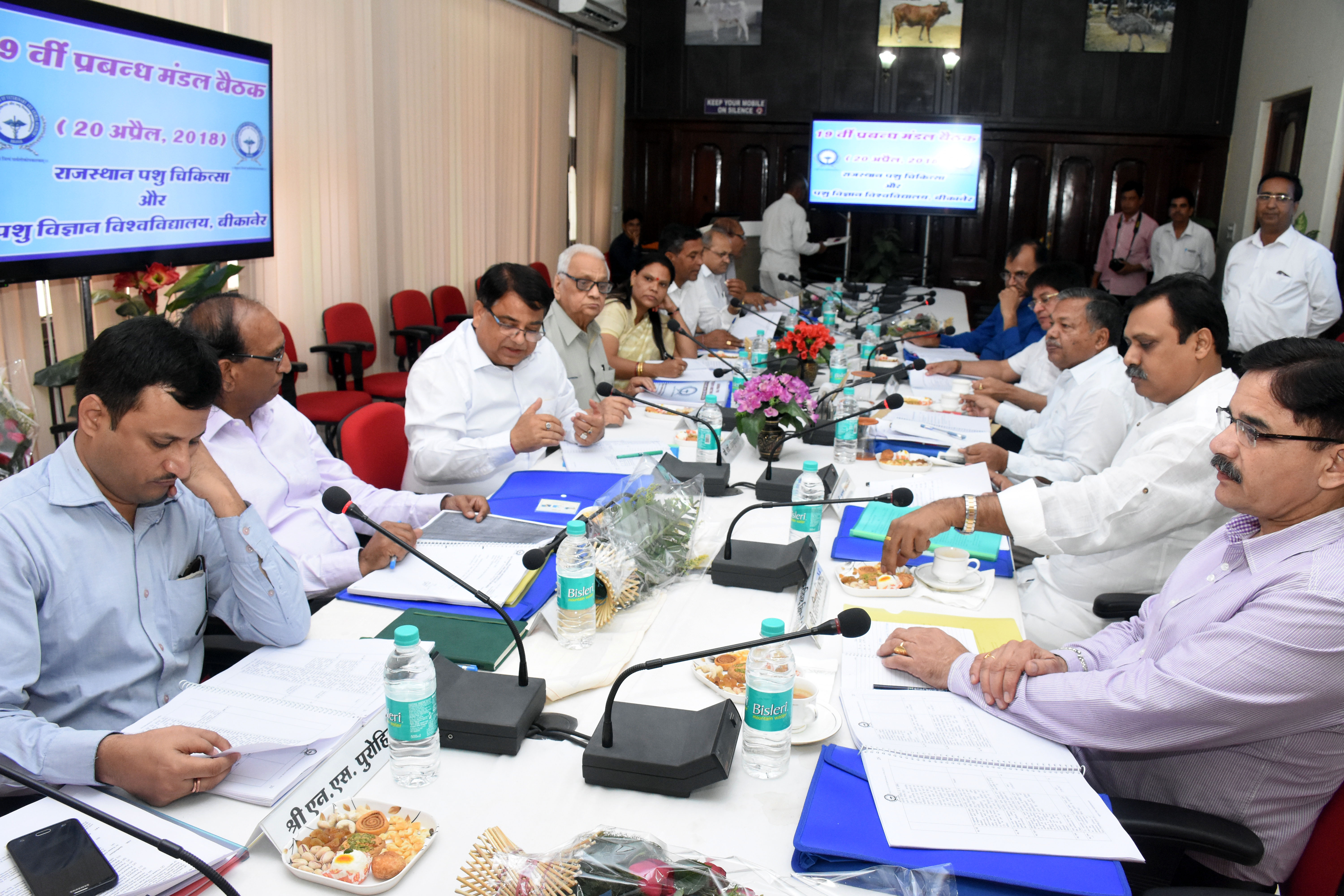 पशु चिकित्सा एवं पशु विज्ञान विश्वविद्यालय, राजुवास की बोर्ड ऑफ मैनेंजमेंट की 19वीं बैठक शुक्रवार को कुलपति प्रो. बीआर छींपा की अध्यक्षता में कुलपति सचिवालय में आयोजित हुई। बैठक में विद्यार्थियों एवं कर्मचारियों से जुड़े अनेक मुद्दों पर आम सहमति के आधार पर सकारात्मक निर्णय लिए गए।