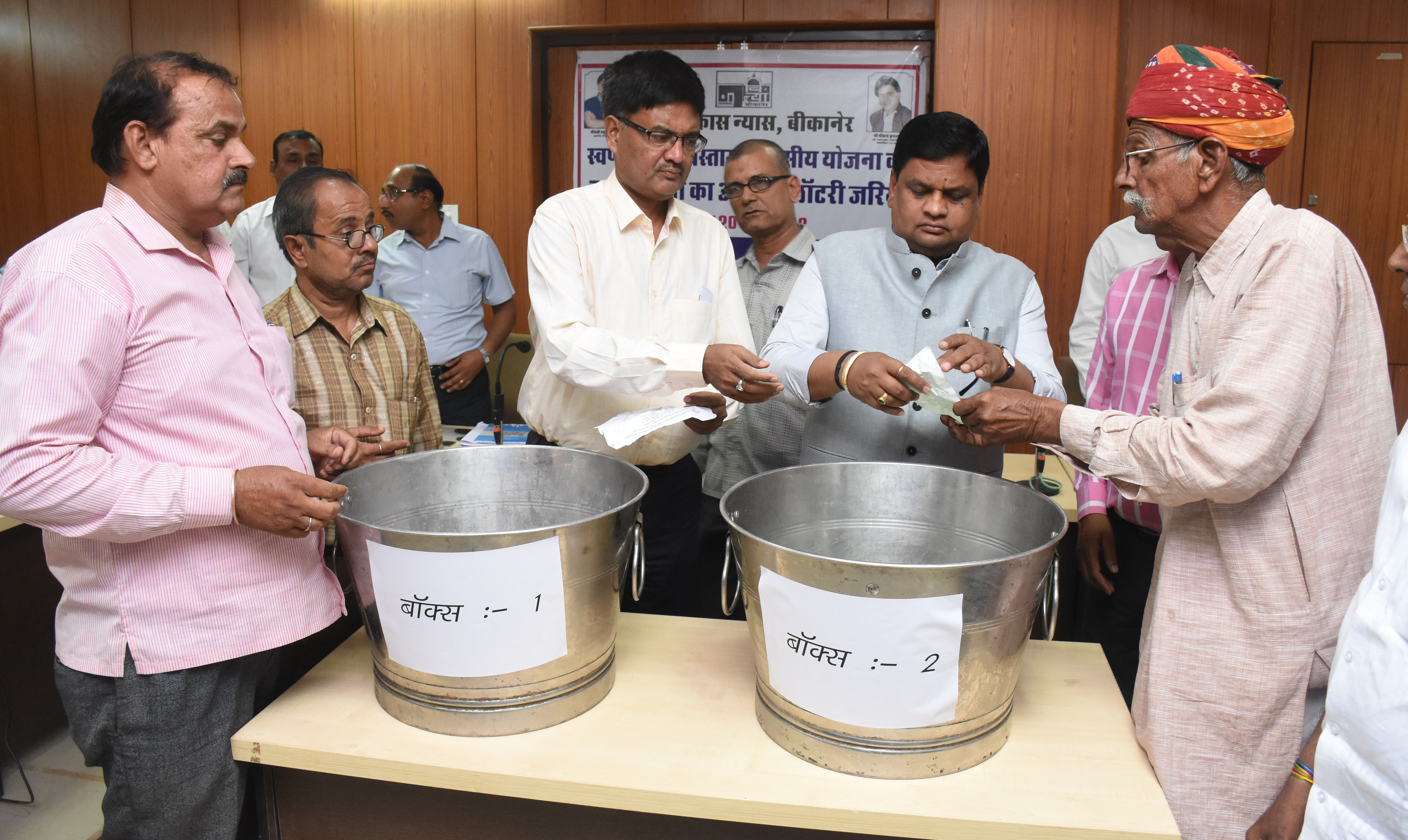 नगर विकास न्यास की ओर से न्यास सभागार में स्वर्ण जयन्ती विस्तार योजना में 68 भूखण्ड़ों के आंवटन के लिए शुक्रवार को लॉटरी निकाली गई। योजना में भूखण्ड़ों के लिए १२४ लोगों के आवेदन सही पाए गए थे। न्यास अध्यक्ष महावीर रांका और न्यास सचिव आर के जायसवाल ने लॉटरी की शुरुआत की।