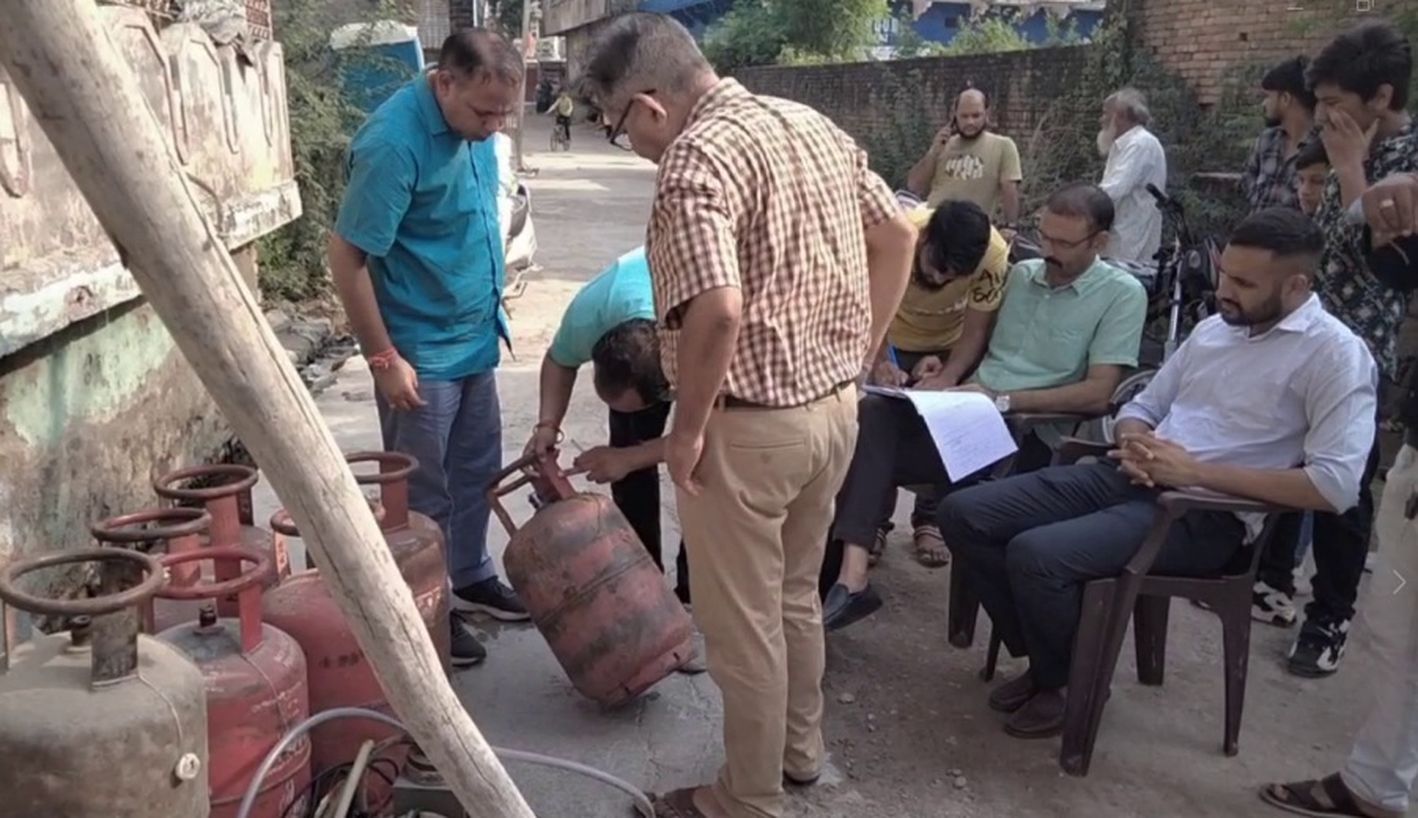 तीन सिलेंडरों में तीन से पांच किलो गैस है और शेष सिलेंडर खाली मिले हैं। मौके से गैस रिफिङ्क्षलग मशीन भी जप्त की गई है।रिफिङ्क्षलग करने वाले युवक को कड़ी हिदायत दी गई है। कार्रवाई के दौरान रसद विभाग के प्रवर्तन निरीक्षक महिकरण सिंह ,राहुल चौधरी सहित एजेंसी संचालक अशोक शर्मा एवं एजेंसी कर्मचारी मौजूद रहे। उधर शहर में अचानक रसद विभाग की कार्यवाही होने और गैस सिलेंडर जप्त होने से कुछ देर के हडक़ंप मच गया। शहर में अवैध रूप से गैस सिलेंडर का व्यापार करने वालो और गैस रिफिलिंग करने वाले दुकानें बंद कर मौके से फरार हो गए और टीम की सूचना लेते रहे।