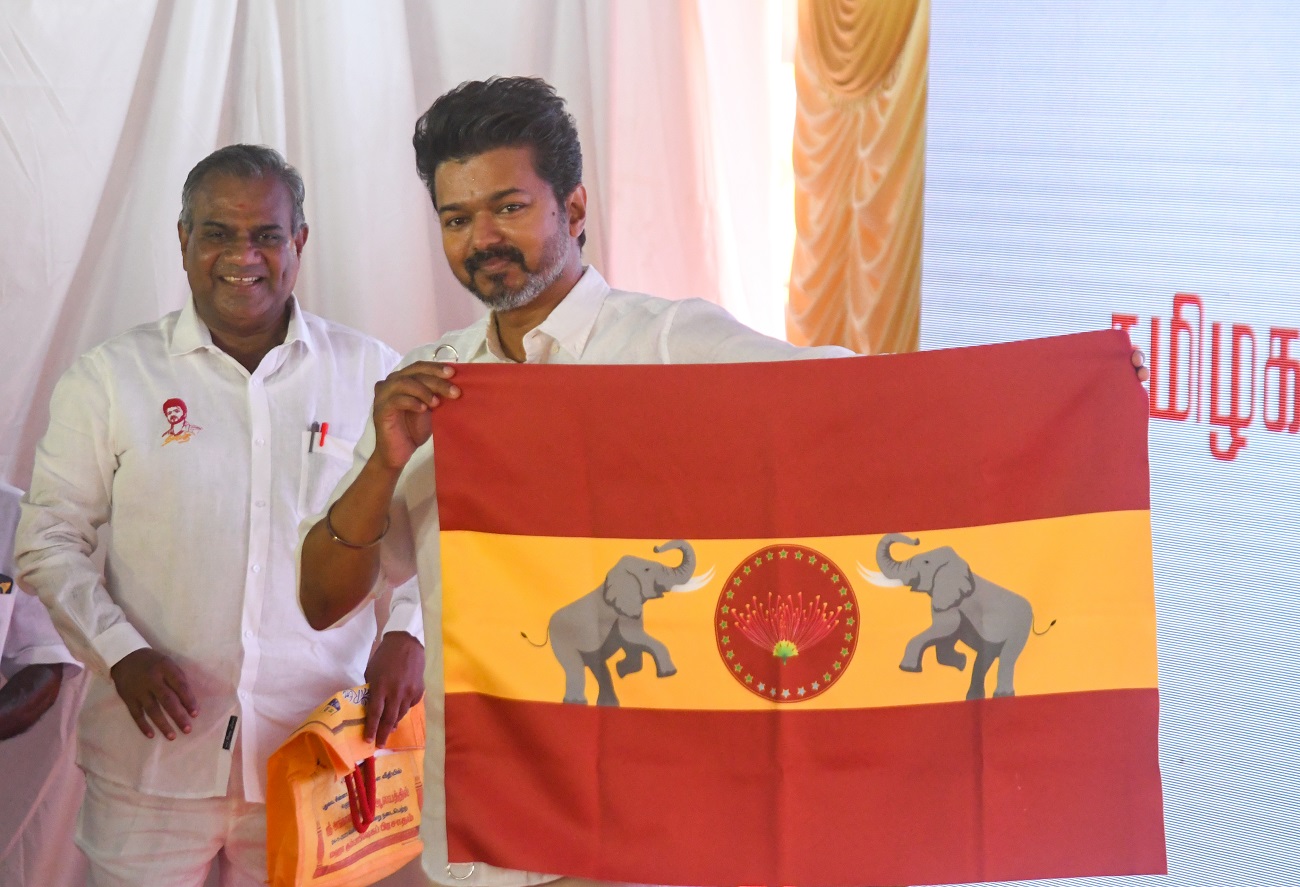 चेन्नई. लोकप्रिय तमिल फिल्म अभिनेता तलपति विजय ने अपनी राजनीतिक पारी का सफर शुरू कर दिया है। राजनेता बने विजय ने गुरुवार को अपनी राजनीतिक पार्टी तमिझगा वेट्री कषगम (टीवीके) का ध्वज जारी किया और उसे यहां नजदीक ही पनयूर स्थित अपने पार्टी मुख्यालय में फहराया। यह ध्वज दो रंगों का है, इसमें ऊपर और नीचे कथई रंग और बीच में पीला रंग है जिसके मध्य में वागै फूल के दोनों ओर दो लड़ते हुए हाथियों की आकृति बनी हुई है। ध्वज के अनावरण और पार्टी गान को आधिकारिक रूप से जारी किए जाने के साथ ही टीवीके के प्रवेश से तमिलनाडु की राजनीति में एक नए अध्याय की शुरुआत हो गई।